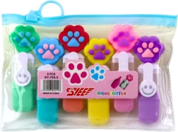 Označevalniki so razporejeni v praktičnem, prosojnem etuiju z merami 16,5 x 10,5 x 2 cm, kar olajša prenašanje in shranjevanje. Set vsebuje 6 neonasto obarvanih označevalnikov, idealnih za poudarjanje najpomembnejših informacij v zvezkih, knjigah ali beležkah.