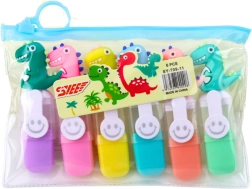 Vsebuje 6 označevalcev v neonskih barvah, idealnih za podčrtovanje pomembnih informacij v knjigah, zvezkih ali zapiskih. Zaradi kompaktne velikosti so enostavno prenosni in vedno pri roki. Gladko in enakomerno pisanje zagotavlja udobje pri učenju in zabavi. Popolno za ljubitelje dinozavrov, prinaša barve in nasmeh v vsak šolski dan.