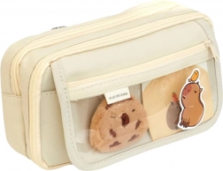 Bež peresnica z motivi kapibare je ne le praktičen organizator, temveč tudi čaroben komplet ustvarjalnega pribora, ki bo očaral vsakega oboževalca papirništva. Ima dva prostorna predelka, od katerih je eden opremljen z mrežastimi delilniki za udobno organizacijo pisal. Na sprednji strani sta dva zunanja žepa, od tega eden prozoren, idealen za okraske, značke ali razglednice.