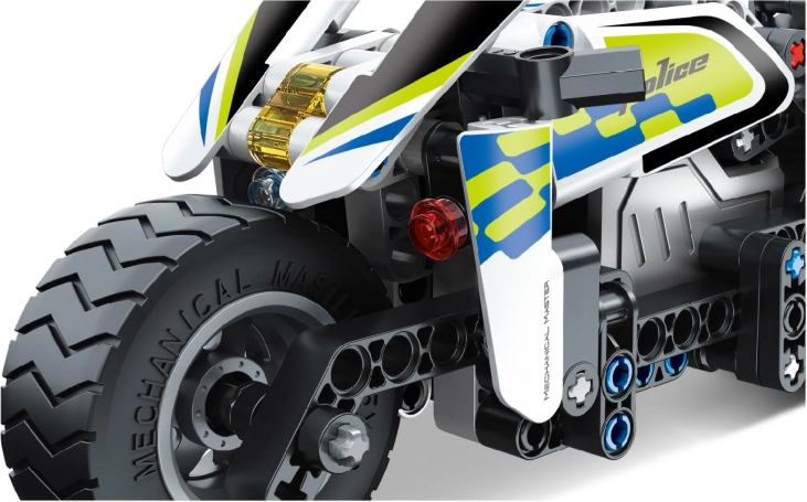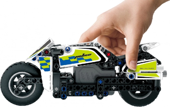 Model vsebuje 193 kakovostnih plastičnih kosov, iz katerih sestaviš realističen policijski motor, pripravljen na vsako akcijo. Jasna navodila in pametno zasnovani deli naredijo sestavljanje zabavno in dostopno tudi mlajšim graditeljem.
