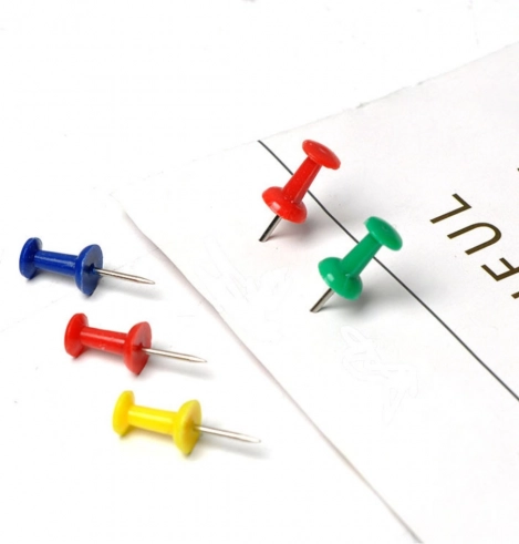 Barviti žebljički za pisarno ali šolo so praktičen dodatek za pluto in tekstilne table, ki omogočajo pritrjevanje zapiskov, fotografij, načrtov ali obvestil. Intenzivne barve pomagajo vizualno označiti informacije, trdna kovinska konica pa zagotavlja varno pritrditev.
