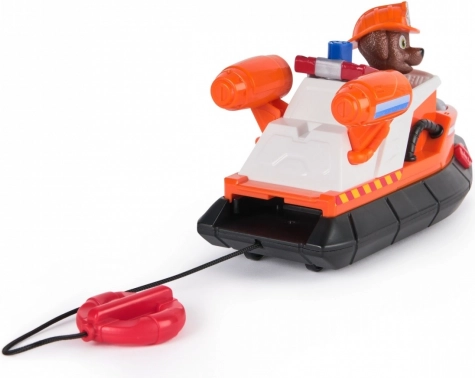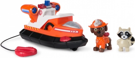 Zuma, visok več kot 5 cm v svojem gasilskem uniformu, je pripravljen rešiti situacijo. Požarna ladja je opremljena z reševalnim obročem, pritrjenim na vrvico, kar zagotavlja veliko akcijskih dogodivščin. Zumi doda šarm tudi mali rakun, ki ga je mogoče rešiti. Otroci lahko pritisnejo gumb za izstrelitev reševalnega obroča, v katerega se rakun popolnoma prilega. Zahvaljujoč originalnemu slogu Tačk na patrulji ta igrača izgleda natanko tako kot v seriji in navdihuje otroke k doživljanju dogodivščin.