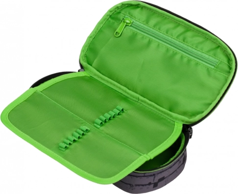 Kompakten šolski puščica Baagl, navdihnjen z igro Minecraft, ponuja prostorno glavno komoro in dvojno zložljivo zavihko za pisalne potrebščine in drobnarije.