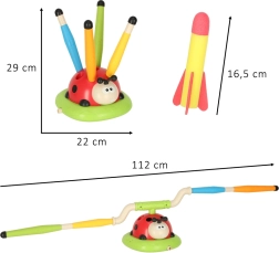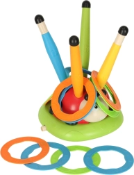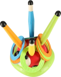 Zabavna in vsestranska igrača za otroke, ki združuje tri aktivnosti za razvoj motorike in koordinacije. Omogoča otrokom skakanje, metanje obročev in izstreljevanje puščic, vse to z zabavnimi melodijami.