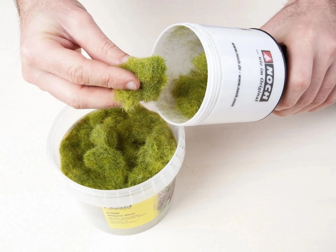 Idealna za oblikovanje travnika, pašnikov ali močvirij zaradi raznolikosti zelenih odtenkov. Vlakna dolžine 2,5 mm so namenjena za merilo H0, vendar so primerna tudi za TT, N, Z, 0, 1, G, H0m, H0e. Za vrhunske rezultate lahko travo nanašate z razpršilnikom za travo ali elektrostatčno metodo s posebnim uređajem.
