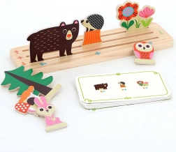 Logična lesena sestavljanka s čudovitimi ilustracijami Ingele P. Arrhenius je idealna za razvoj prostorske predstavljivosti, logičnega mišljenja in fine motorike otrok. Z leseni koščki in igralnimi kartami se otroci učijo zaznavati prostorske odnose, kot so levo, desno, zgoraj in spodaj, glede na navodila.