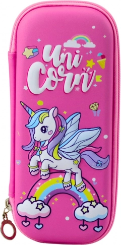 Ta barvit šolski peresnik, okrašen z motivom pravljičnega samoroga, je idealen za otroke, ki cenijo tako funkcionalnost kot izviren videz šolskih potrebščin. Trdna konstrukcija ščiti vsebino pred poškodbami, medtem ko zaprta komora z zadrgo zagotavlja udobno in varno shranjevanje pripomočkov.