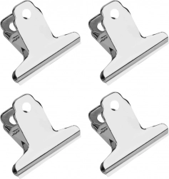 Te sponke so izdelane iz odporne kovine, kar zagotavlja njihovo trpežnost in možnost večkratne uporabe. Njihova preprosta oblika ter sijoča, kromirana površina jim daje profesionalen videz. Zaradi odprtine v ročaju lahko sponke enostavno obesite na tablo ali kavelj.