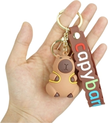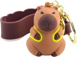Okrasite svoje ključe, nahrbtnik ali peresnico s praktičnim in hkrati stilskim dodatkom. Ta silikonski obesek v podobi kapibare z rumenim nahrbtnikom navduši z dizajnom in je odlično darilo za otroke in odrasle. Priložena je tudi elastična značčka z napisom »capybara« v barvnih črkah, ki doda čudovit videz.