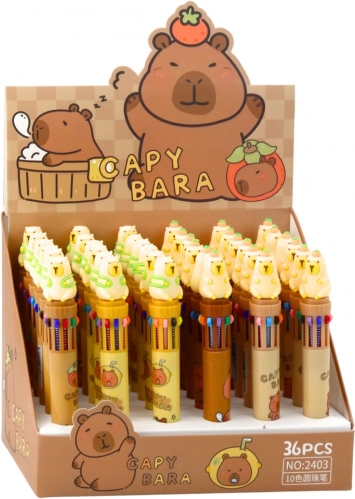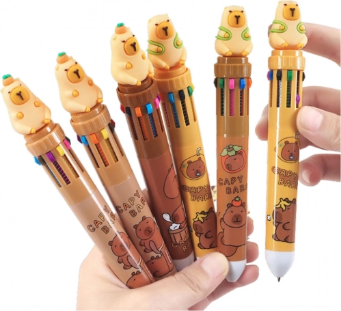 Večbarvno pero s kapibaro je opremljeno z do 10 različnimi barvami črnila, kar ga naredi idealno orodje za vsakodnevno pisanje, ustvarjalne zapiske, podčrtovanje ali risanje. Ergonomska oblika peresa zagotavlja udobje pri daljšem pisanju, visokokakovostni vložki pa omogočajo gladko pisanje po papirju.