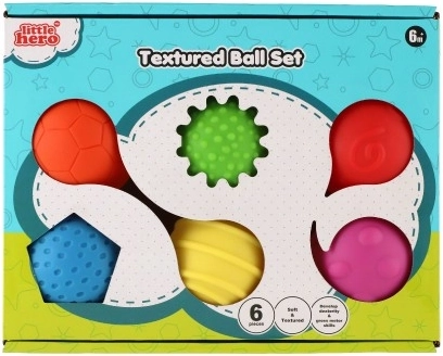 Barvit set šestih mehkih žogic z različnimi teksturami za najmlajše podpira razvoj fine in grobe motorike, čutno zaznavanje in taktilno raziskovanje. Vsaka žogica ima drugačno površino in barvo, ob stisku zažvižga/piska in je zdravju neškodljiva. Odlično za spodbujanje gibanja in zabavno učenje.