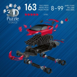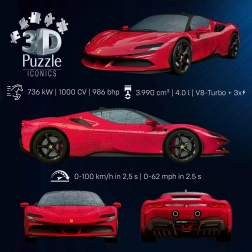 Uživajte v edinstveni kombinaciji sestavljanja in modelarstva. Ta realistični 3D model vozila FERRARI SF90 STRADALE v značilni rdeči barvi je sestavljen iz 108 kosov, ki se natančno prilegajo zahvaljujoč tehnologiji EasyClick – brez potrebe po lepljenju. Po sestavljanju dobite privlačno dekoracijo z vrtljivimi kolesi, pripravljeno za razstavljanje.
