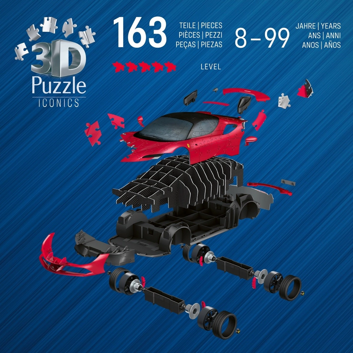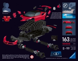 Robustna notranja konstrukcija zagotavlja maksimalno stabilnost in dolgo življenjsko dobo modela. Podrobna karoserija, dodelane luči in aerodinamične linije bodo navdušile zbiratelje in ljubitelje športnih avtomobilov. Odlično kot darilo za otroke in odrasle, ki imajo radi Ferrari, modele in pametne sestavljanke.