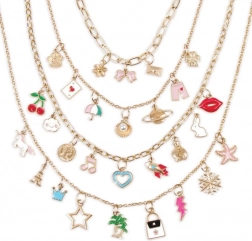 S tem kompletom lahko ustvarite povsem edinstvene ogrlice, ki bodo poudarile vaš slog. Izberite verižico in razporedite privjeske po lastni domišljiji. Komplet vsebuje vse potrebno, da bo vaš izdelek točno takšen, kot želite, vključno s praktično podlogo za razporejanje privjeskov.