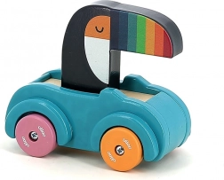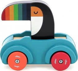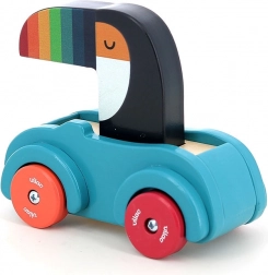 Leseni avtomobilček s hupo je idealna igrača za malčke. Zaradi pisanih koles in tukana z barvitim kljunom pritegne pozornost in spodbuja zabavno igro. Hupa, ki zatrubi ob pritisku na tukanovo glavo, nudi interaktivno izkušnjo za malčke, vzbuja njihovo zanimanje in izboljšuje koordinacijske sposobnosti.