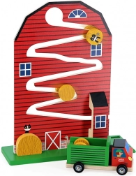 Odkrijte čar kmetije z lesenim labirintom Vilac. Ta igra je idealna za otroke od 18 mesecev naprej in ponuja izobraževalne izkušnje, ki nikoli ne bodo dolgočasne. Otroci se učijo osnovnih načel vzroka in posledice tako, da opazujejo, kako se bale sena spuščajo po stezi.