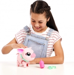 Priložena je rožnata steklenička. Nahrani svojega pujseka, pobožaj ga in opazuj njegove reakcije – skrb za ljubljenčka kot zares.