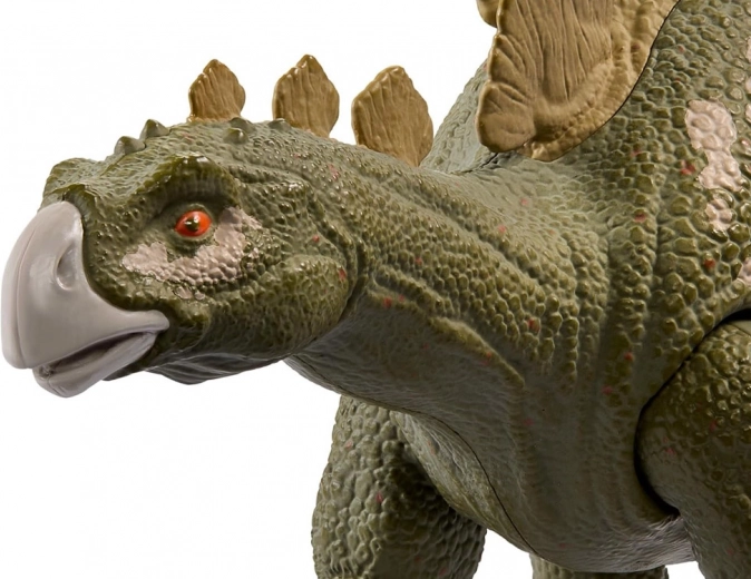 Visoka kakovost izdelave z veliko pozornosti do detajlov. Zanimiva tekstura, ki posnema dinozavrovo kožo, odlično izdelane kostne plošče na hrbtu, realistična obarvanost, kremplji na koncu nog in dovršena glava živali poskrbijo, da celota deluje osupljivo. To strašljivo bitje lahko zlahka prestraši, a postane tudi otrokova najljubša igrača in odlično služi za uprizarjanje prizorov iz jurskega gozda.