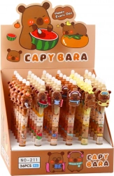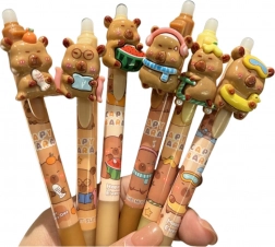 Samodejno pero z motivom kapibare ponuja ne le funkcionalnost, temveč tudi zabaven dizajn, ki ga bodo cenili vsi ljubitelji teh živali. Na vrhu peresa je dekorativna 3D figurica iz mehke gume, ki jo je enostavno pritisniti, kar ustvarja igriv element.