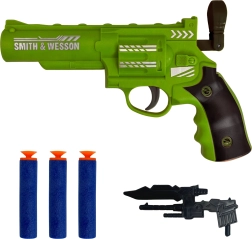 Del kompleta je stajliš revolver s 3 mehkimi puščicami. Odlično za urjenje natančnosti in dinamično igro brez tveganja.