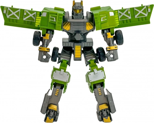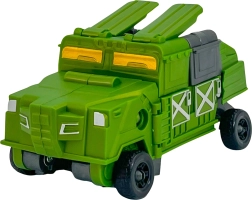 Spremenite akcijsko figurico v robustno zeleno bojno vozilo v nekaj korakih. Vidna kolesa in plošče nakazujejo, kje preklopiti – zmorejo tudi otroci.