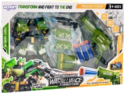 Vstopite v akcijo z dinamičnim kompletom WOOPIE: zeleni transformirajoči robot, ki se v hipu spremeni v bojno vozilo, ter varen penasti revolver s puščicami za vrhunsko zabavo. Idealno za otroke od 3 let dalje, razvija ustvarjalnost, logično mišljenje in fino motoriko.