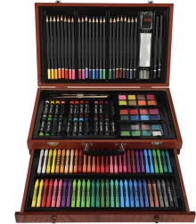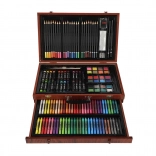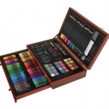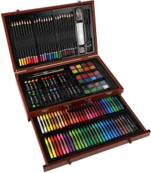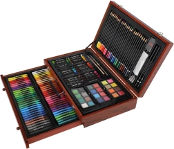 Ta bogat likovni set je odlična izbira za začetnike in napredne ustvarjalce, ki iščejo vse potrebno na enem mestu. Kompakten lesen kovček zagotavlja pregledno shranjevanje in enostavno prenašanje, zato lahko ustvarjate doma, v šoli ali na poti.