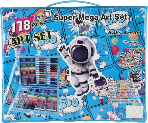 Odkrijte neskončen navdih s tem vsestranskim kreativnim kompletom z vesoljskim motivom! V lahkem plastičnem kovčku najdete skupaj 178 likovnih pripomočkov, pregledno razporejenih za enostavno uporabo doma, v šoli in na poti. Kompaktne dimenzije in praktično shranjevanje ga naredita odlično izbiro za vsakogar, ki rad riše, slika in ustvarja brez meja.