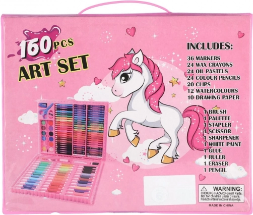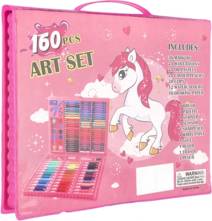 Ta bogato opremljen likovni set bo razveselil vsakega malega umetnika. Motiv s samorogom pritegne na prvi pogled, praktični plastični kovček pa ohranja vse pripomočke pregledno na enem mestu. Zaradi široke palete barv in vrst pisal je set popoln za risanje, slikanje, barvanje in prve umetniške projekte.