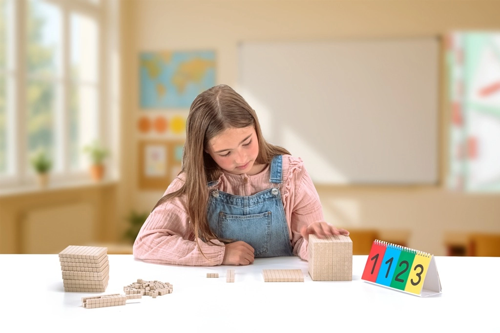 Osnovni komplet Dienes za poučevanje matematike pomaga otrokom bolje razumeti principe desetiškega sistema z manipulacijo kock različnih vrednosti. Izdelano iz ekološkega materiala RE-Wood® in je idealno za individualno in skupinsko učenje.