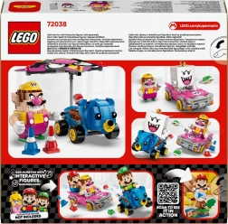 Doživite hitre dirke, ostre drifte in vznemirljive dvoboje z lupinami. Set prinaša 2 lika – Wario in King Boo – ter podrobno oblikovana modela vozičkov Badwagon in Teddy Buggy s funkcionalnimi kolesi. Badwagon ima poleg tega odstranljivo jadralno krilo, ki ga lahko namestite tudi na Teddy Buggy, zato lahko med igro gladko preklapljate med vožnjo in »jadranjem«.