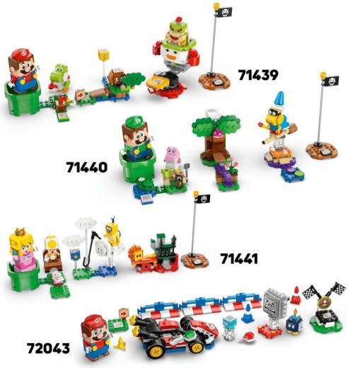 Dodaj LEGO Maria, LEGO Luigija ali LEGO Peach (naprodaj posebej) in pridobi zvočne ter vizualne učinke, zbiranje kovancev in igralne izzive.