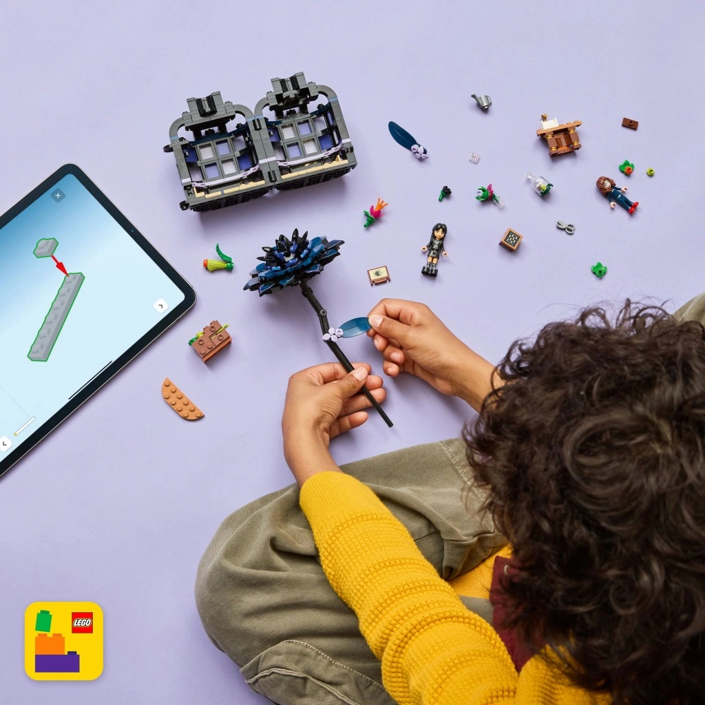 Dve mini punčki – Wednesday Addams in profesorica Marilyn Thornhill – spodbujata domišljijo in dodajata napeto vzdušje. Zaradi premišljenih detajlov, premičnih elementov in možnosti aranžiranja je komplet odličen za razstavo in igro. Z aplikacijo LEGO Builder lahko starejši otroci model preprosto sestavljajo, ga vrtijo v 3D in spremljajo napredek.