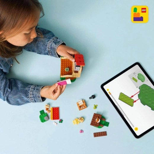 Zgradite barvito Goldiejino hišico z rdečo streho, poštnim nabiralnikom in udobno notranjostjo, kjer najdete posteljo in klavir. Zunaj vas čaka piknik miza s kroasantom, hruško in skodelico – idealno za zgodbe, polne domišljije. Z aplikacijo LEGO Builder lahko otroci modele povečajo in vrtijo v 3D ter še samozavestneje sestavljajo.