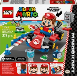 Doživite dinamične dirke v svetu LEGO Super Mario. Posadite LEGO Maria za volan njegovega standardnega gokarta, aktivirajte zvočne in vizualne učinke Mario Kart, pridobite digitalne nagrade iz vprašaj-blokov ter premagajte Bob-omba in mogočnega Thwompa. Set prinaša pametno zasnovane elemente proge, ki jih zlahka preuredite, in podpira tako samostojno kot ekipno igro.