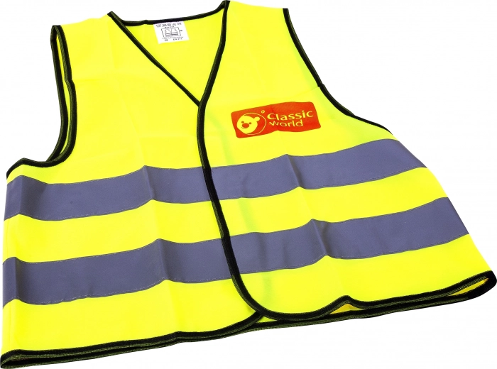 Predstavite svojemu otroku svet varnosti in zabave z odsevnim telovnikom znamke CLASSIC WORLD. Ta telovnik v živahni fluorescenčni rumeni barvi z odsevnimi črtami je idealen za male gradbenike, policiste, gasilce ali popotnike. Otroke uči pomembnosti vidnosti in varnosti na cesti med vožnjo s kolesi, skiroji ali vozički. Lahek in udoben, podpira aktivno in ustvarjalno igro doma in na prostem.