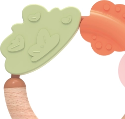 Edinstvena kombinacija naravnega lesa in mehkega silikona spodbuja čute in vzpodbuja raziskovanje sveta, kar jo naredi popolno prvo grizalo in ropotuljico za vsakega otroka.