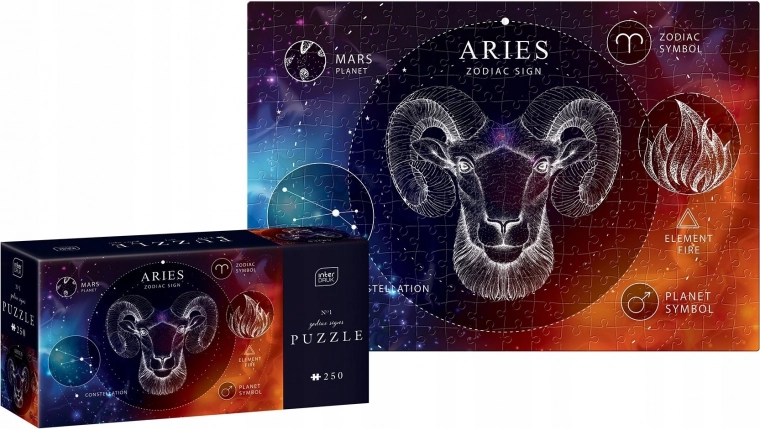 Odkrijte očarljivi svet zodiaka z našo sestavljanko z motivom Ovna. Ta sestavljanka z 250 koščki je idealna za ljubitelje astrologije in za vse, ki iščejo izziv.