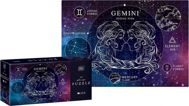 Preizkusite svoje sposobnosti in potrpežljivost s sestavljanko Zodiak Dvojčka, ki bo razveselila tako otroke kot odrasle. Set vsebuje 250 kosov, po sestavljanju pa boste cenili čudovit motiv zvezdnega znamenja Dvojčkov.