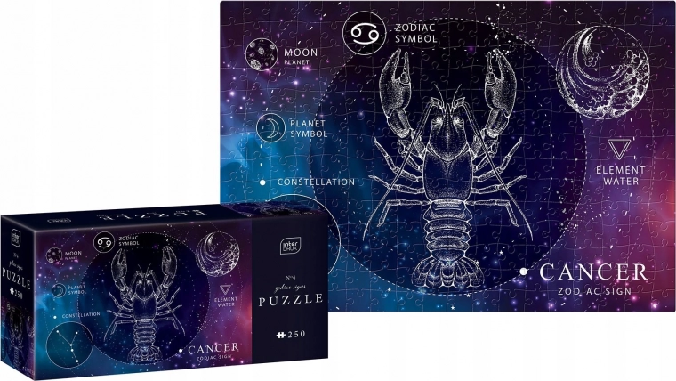 Uživajte v zabavi ob sestavljanju te čudovite sestavljanke, ki prikazuje zodiakalno znamenje Rak. S 250 kosi in dimenzijo 48 x 33 cm je idealna za vse starostne skupine.