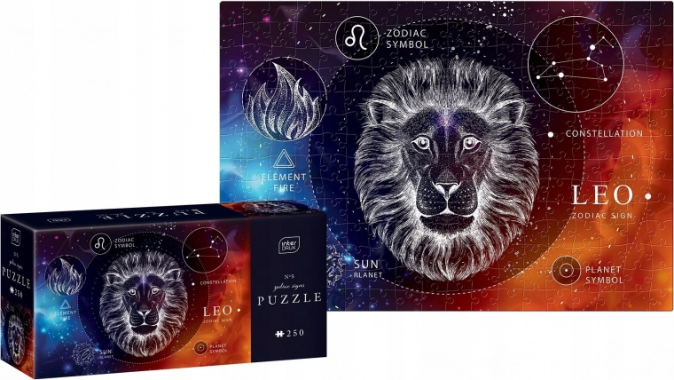 Vstopite v svet zodiaka s to sestavljanko z 250 kosi, ki prikazuje znamenje Lev. Sestavljanka je idealna za vse ljubitelje astrologije in ponuja: