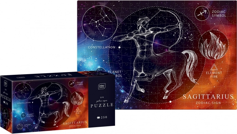 Odkrijte čar astrologije s puzzli Zodiak, ki odlično zapolnijo vaš prosti čas in razvijajo vaše ustvarjalne sposobnosti. Motiv Strelca je idealno darilo za vse ljubitelje astrologije in svet sestavlja košček za koščkom.