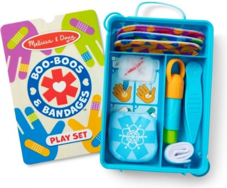 Negovalni komplet Melissa & Doug, ki otrokom omogoča igro zdravnika. Otroci si lahko ustvarijo izmišljene praske in jih odstranijo s priloženimi orodji.