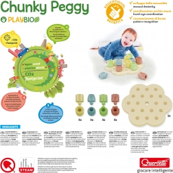 Chunky Peggy je barvita sestavljanka, zasnovana za razvoj otroške motorike in koordinacije roke in očesa. Zahvaljujoč uporabi biokompozitnega materiala iz lesa in plastike, ki je prijazen do okolja, je ta igrača hkrati trajnostna in zabavna. Ko se otrok potopi v svet barv in oblik: