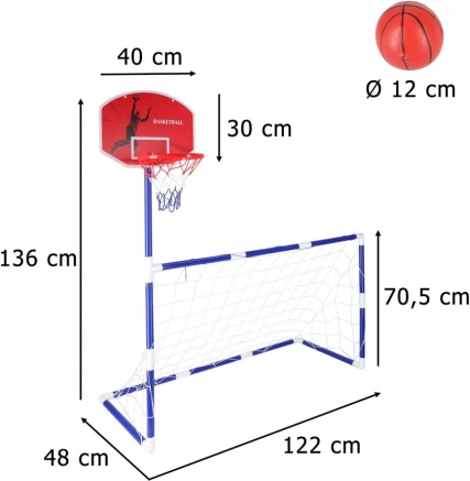 Nogometni gol in koš za košarko 2v1 je idealen za male športnike. Ta komplet vsebuje vse, kar vaš otrok potrebuje za zabavo na vrtu in v notranjih prostorih.