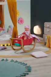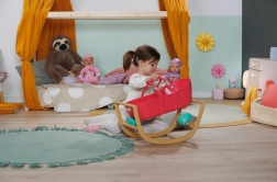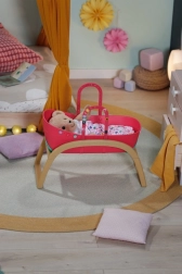 Odkrijte praktično posteljico 3 v 1 za punčke BABY born, ki raste z otroško domišljijo. V hipu jo spremenite iz elegantne zibelke v prenosno košaro z integriranimi ročaji ali v stabilno otroško posteljico. Lahka plastična kadica v kombinaciji s čvrstim zibalnim podstavkom z videzom lesa zagotavlja enostavno prenašanje in varno, tekoče zibanje.