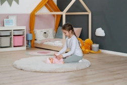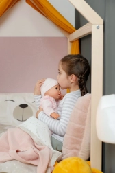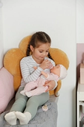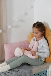 Prijetno prožna zasnova je idealna za objemanje in vsakodnevno igro. Otroci punčko zlahka držijo, nosijo in polagajo spat.