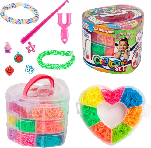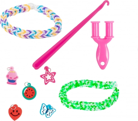 Kreativni komplet za izdelavo lastnih zapestnic in dodatkov je idealen za vsakega malega oblikovalca, ki želi razvijati svoje spretnosti. Vsebuje več kot 2700 barvnih elastik in orodja za pletenje.