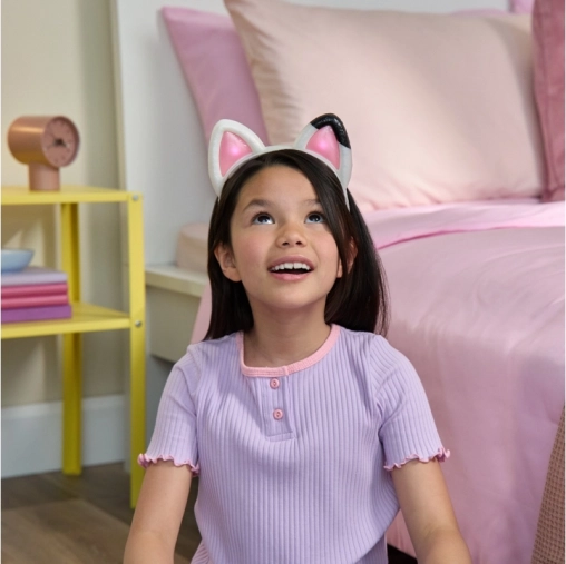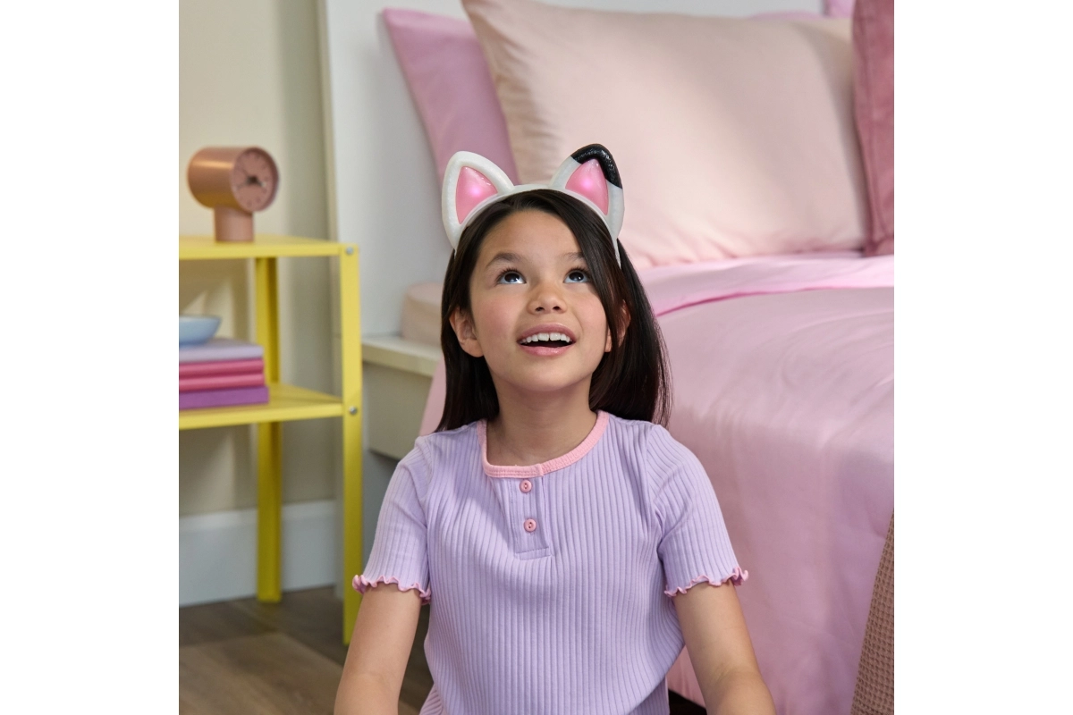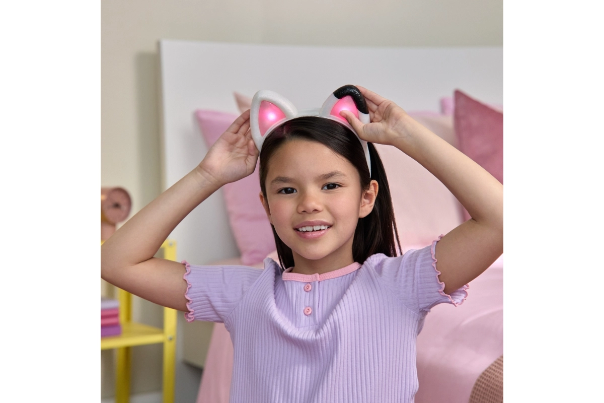 Naj zažari vsako preoblačenje in igra vlog z interaktivnim naglavnim trakom, navdihnjenim po seriji Gabinina čarobna hiška. Realistična mačja ušeska z rožnatimi notranjostmi in značilnimi črnimi konicami oživijo s svetlobo, zvoki in gibalno aktivacijo, tako da otroci takoj vstopijo v magični svet Gabine.