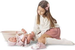 Ta španska punčka je idealno darilo za vaše otroke. Je ročno izdelana in njeno celovinilno telo je prijetno na dotik. Podrobnosti, kot so dojenčkaste gubice in realističen prikaz spola, dajejo občutek prave dojenčice.